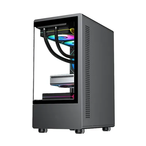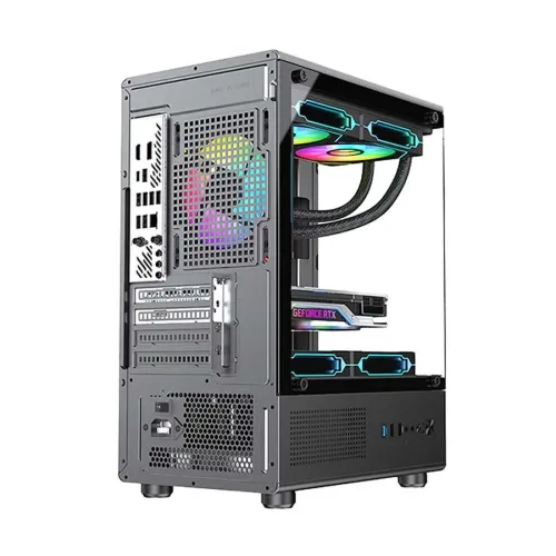 The PC Power Vertical X2 Infinity BK mATX Gaming Case's tempered glass side panel window stylishly displays the PC components. The PC Power Casing is both aesthetically pleasing and structurally sturdy. The PC Power Vertical X2 Infinity BK Casing has Type C, HD Audio, USB 3.0, and USB 1.0 ports on the front panel. Modern accessories, storage devices, and peripherals can all be easily connected using these open ports. The four PCI slots built into the PC Power Casing allow you to install all the necessary expansion cards for both your gaming and work demands. A total of five fans are already included into the PC Power Vertical X2 Infinity BK mATX Mid Tower Gaming Case to ensure optimal ventilation. An arrangement of three 120 mm fans, one at the back, two up top, and two down below, serves to cool the device. The optimal location of the fan ensures steady airflow, which contributes to consistent thermal performance even during long sessions. The PC Power Vertical X2 Infinity BK mATX Gaming Casing supports longest graphics card that the casing can accommodate is 280 mm. For effective air cooling, it can also fit CPU coolers up to 160 mm in height. One 3.5-inch HDD space and two 2.5-inch SSD slots provide storage versatility. Airflow, expansion capacity, and ordered interior spacing are all well-balanced in the PC Power Vertical X2 Infinity BK mATX Gaming Case. With its practical features and consistent compatibility with recent Micro ATX gaming systems, it is a trusted PC power casing alternative.