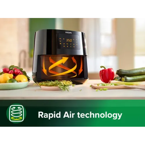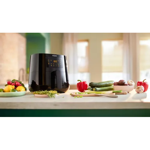 The Philips 3000 Series Essential Digital XL 6.2L Air Fryer is a powerful and versatile appliance designed to revolutionize your cooking experience. Engineered with a robust 2000-watt power output, this air fryer delivers rapid and consistent heat, ensuring perfectly cooked meals every time. Its generous 6.2-liter capacity makes it ideal for families or entertaining guests, allowing you to prepare large portions with ease. Thanks to Rapid Air Technology, this fryer circulates hot air at high speed to cook food evenly with up to 90% less fat, offering a healthier alternative to traditional frying. It’s not just an air fryer it’s a multi-cooker that lets you fry, grill, roast, and even bake, giving you the flexibility to prepare everything from crispy fries to moist cakes. The adjustable time and temperature control ensure precision cooking, while the LED display provides clear visibility and intuitive operation. Convenience is at the heart of the Philips HD9270/90 Essential Digital XL. The Quick Clean feature and dishwasher-safe parts make cleanup effortless. Safety is enhanced with an automatic shut-off, cool wall exterior, and a ready signal that alerts you when your food is done. The keep warm function maintains your meal at the perfect temperature until you're ready to serve. Additional features like the on/off switch, temperature control, and time control offer full customization for every recipe. With its patented Rapid Air technology, sleek design, and user-friendly interface, the Philips 3000 Series Essential Digital XL 2000W Air Fryer is a must-have for health-conscious cooks who refuse to compromise on taste or convenience.