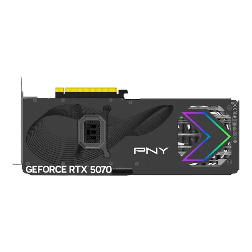 The PNY GeForce RTX 5070 ARGB EPIC-X RGB OC Triple Fan 12GB GDDR7 Graphics Card is powered by the advanced NVIDIA Blackwell architecture. This PNY RTX 5070 Graphics Card strikes a good balance between raw power and clever processing, making it suitable for high-resolution gaming, streaming, and creative tasks. The PNY GeForce RTX 5070 ARGB EPIC-X RGB OC GPU features 6,144 CUDA cores and a base clock speed of 2.16 GHz, enabling it to handle demanding AAA titles and GPU-accelerated programs smoothly. The 12GB GDDR7 memory operates at an amazing 28 Gbps and employs a 192-bit memory interface, providing up to 672 GB/sec of memory bandwidth for rapid data processing and low latency. The PNY GeForce RTX 5070 ARGB EPIC-X RGB OC Triple Fan Graphics Card is designed for performance and stability, with a powerful triple-fan cooling system that efficiently handles its 250W thermal design power. The ARGB EPIC-X RGB lighting gives a high-end visual accent while merging seamlessly with contemporary PC systems. This PNY Graphics Card has three DisplayPort 2.1b outputs and one HDMI 2.1b connection for connecting up to four screens at once. It can drive 4K at an ultra-smooth 480Hz or dazzling 8K at 165Hz with DSC3, preparing it for future display standards. The PNY GeForce RTX 5070 ARGB EPIC-X RGB OC GPU has a PCI-Express 5.0 x16 interface for maximum bandwidth and a single 16-pin power input, which can be converted to a twin 8-pin adaptor for compatibility.