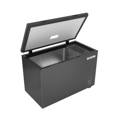 The RANGS RCF-335DFV 335-Liter Deep Freezer Blue is a large-capacity chest freezer that is built for optimal food preservation, efficiency, and convenience. With its rapid freezing capability, this freezer keeps your food fresh for a long amount of time. The adjustable thermostat provides accurate temperature control to meet a variety of storage requirements. This Rangs RCF-335DFV 335L Deep freezer features inside LED illumination for great sight, and the detachable storage basket allows for easy organizing of regularly used products. Its simple rolling wheels allow for seamless transportation, making it suitable for both residential and business use. The R600a gas refrigerant is free of CFCs and ecologically safe, making it suitable for long-term cooling solutions. This deep freezer is designed with high-pressure foam insulation to keep food at appropriate temperatures for lengthy periods of time. Its high-quality compressor and cooling system decrease power usage while maintaining performance, adding to energy efficiency. The defrost water drainage mechanism makes maintenance easier, while the sliding glass shelf promotes efficient cooling circulation. This Rangs RCF-335DFV freezer, designed for modern families and companies, features a reversible door with a magnetic closure, mechanical temperature control, direct cooling technology, and a super-sized freezing chamber. Its optimal insulating thickness increases energy efficiency, while the lock and key mechanism adds security. Furthermore, the antibacterial interior feature inhibits bacterial development, assuring cleanliness and food safety. With a low-noise design, the RANGS RCF-335DFV provides comfortable operation without disturbing your environment. Whether for home use or commercial storage, this freezer delivers reliable performance, advanced technology, and a spacious design tailored for ultimate food preservation.