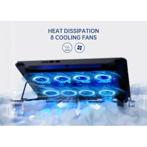 The Rapoo CF300 Laptop Cooler features 8 high-speed cooling fans that spin at 2600 RPM. These fans deliver strong airflow to keep your laptop cool during gaming, editing, or long work sessions. The cooler helps prevent overheating and improves system stability. Its air-cooled design ensures efficient heat dissipation without loud noise. Whether you're using a gaming laptop or a work notebook, the CF300 provides consistent cooling performance. This makes it ideal for heavy users, content creators, and students. The Rapoo CF300 cooling pad is a smart choice for anyone who wants better laptop temperature control.