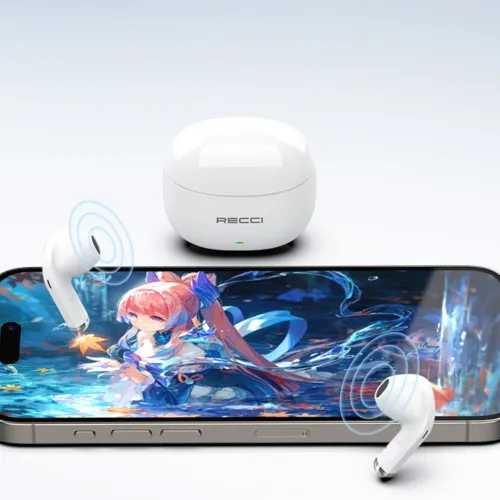 The Recci W81 MELODY is a premium set of wireless earbuds that perfectly combines cutting-edge audio technology, stylish design, and all-day comfort, making it an ideal choice for music enthusiasts, professionals, and on-the-go users. The Recci W81 MELODY Earbuds feature a semi-in-ear ergonomic design, providing a secure and comfortable fit that minimizes ear fatigue even during long listening sessions, while the 13mm Hi-Fi speaker drivers deliver deep, resonant bass, clear treble, and high-fidelity sound for an immersive audio experience. With Bluetooth 5.3 connectivity, the Recci W81 MELODY Bluetooth Earbuds offer stable, low-latency performance, ensuring uninterrupted music streaming and HD voice calls with crystal-clear clarity. The Recci W81 MELODY TWS comes in a compact, stylish form factor adorned with a radium-carved RECCI logo, reflecting premium aesthetics while remaining lightweight at just 32g. Each earbud is powered by a 25mAh battery, complemented by a 250mAh Type-C charging case, providing up to 30 hours of total playback, 4 hours of music playback, and 3 hours of talk time at 80% volume, with a fast 1.5-hour charging time for quick power-ups. Additional benefits of the Recci W81 series include seamless pairing via the REP-W81 name, fast charging, stable connection thanks to the Blue News AB5656 chip, and a compact, portable design ideal for commuting, workouts, or casual listening. Combining superior sound quality, ergonomic comfort, fast wireless performance, and stylish design, the Recci W81 Bluetooth Earbuds and TWS version set a new standard in wireless audio, making them an essential gadget for anyone seeking high-quality sound and convenience in a sleek, modern package.