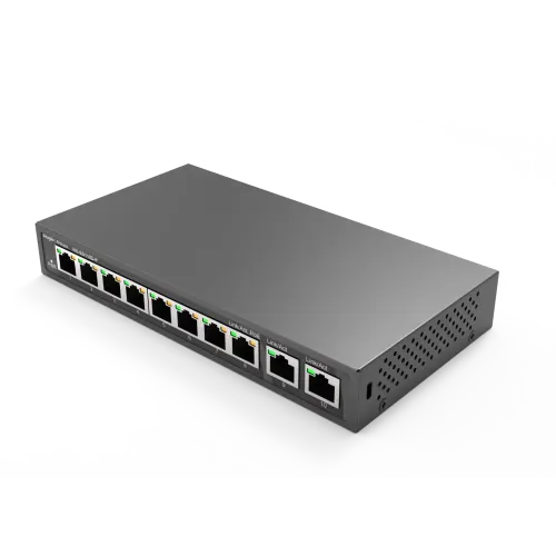 | Interface | 8x 10/100Base-X PoE+ ports 2x 10/100/1000Base-T ports |
