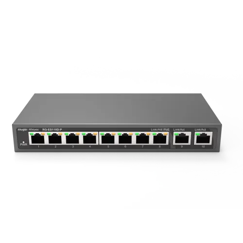In Bangladesh, you can get original Ruijie RG-ES110D-P 10-Port Desktop Unmanaged PoE Switch From CCTV Shop. We have a large collection of latest Ruijie Switch to purchase. Order Online Or Visit your Nearest CCTV Shop Shop to get yours at lowest price. The Ruijie RG-ES110D-P 10-Port Desktop Unmanaged PoE Switch comes with 3 Years warranty.