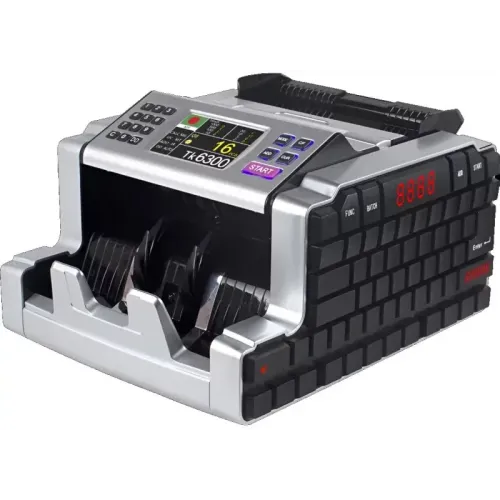 | Others | Counting Speed: 1000 notes per minute Size of Countable Money: 50 × 110 mm to 90 × 170 mm Thickness of Countable Money: 0.075–0.15 mm Hopper Capacity: 100 old bills or 200 new bills Stacker Capacity: 100 old bills or 200 new bills Chained note detection Half note detection Counterfeit note detection (UV, MG) Display: Dual display system Power Consumption: ≤80W Power Supply:AC220V ±10% 50Hz Weight: 7.5 kg |