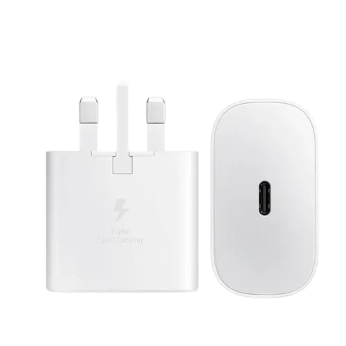 The Samsung 25W PD Super Fast 3-pin Travel Adapter is a state-of-the-art option for emergency quick charging. This adapter has been designed with innovative features to enable effective and quick power transmission, meeting the needs of current electronics. With a maximum power output of 25W, this adapter boasts Super Fast Charging capabilities thanks to Samsung's cutting-edge 25W USB Type-C PD technology. PD 3.0 PPS (Programmable Power Supply) compatibility at a maximum of 25W guarantees the best possible charging efficiency for all supported devices. This adapter is versatile for a variety of charging needs and is compatible with some Samsung products, including the Galaxy S10 5G, A80, A70, and future-compatible smartphones. The Samsung 25W PD Adapter offers dependable performance whether you're charging your tablet, smartphone, or other USB-C-capable devices. With a broad input voltage range of 100-240V, this adapter easily switches between various power sources, which makes it perfect for trips abroad. Normal charging yields an output voltage of 5V; rapid charging provides PDO at 9V with PPS ranging from 3.3V to 5.9V or 3.3V to 11.0V. The output current may reach up to 3A for standard charging and 2.77A or 2.25A (3.3V to 11.0V) for rapid charging, respectively, with PDO and PPS available at 9V and 3.0A and 5.9V, respectively. This guarantees an effective power supply customized to your device's requirements. You may take advantage of the convenience of utilizing USB-C compatible connections with its USB-C compatibility, which guarantees seamless connectivity and compatibility with a variety of devices.