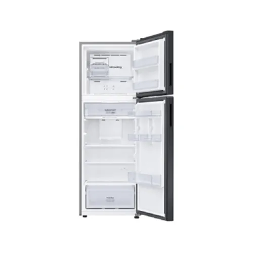 The SAMSUNG RT31CG5420B1SE 305L Top Mount Refrigerator is a premium Samsung 305L refrigerator designed for modern households. With a net capacity of 305 liters, it offers ample storage for fresh and frozen items. The fridge section provides 237 liters, while the freezer holds 68 liters, ensuring balanced space for all needs. This Samsung 305 liter fridge features advanced cooling technology. The No Frost system prevents ice buildup, while Multi Flow ensures even cooling across compartments. Mono Cooling maintains consistent temperature, keeping food fresh longer. The Samsung RT31CG5420B1SE is crafted with practical design. Its dimensions are 600 x 1715 x 647 mm, fitting seamlessly into most kitchens. The refrigerator weighs 52 kg, making it sturdy yet manageable. Tempered glass shelves, a vegetable drawer, and four door pockets maximize storage efficiency. Inside, the LED lighting provides clear visibility. The deodorizer keeps air fresh, while the Optimal Fresh Zone maintains ideal conditions for sensitive items. The freezer includes a twist ice maker, one shelf, and two door pockets for organized storage. This Samsung top mount freezer 305 Ltr. is powered by a digital inverter compressor, ensuring energy efficiency and quiet operation. The refrigerant R-600a enhances eco-friendliness. Its sleek black finish with recessed handles adds elegance to any kitchen. The Samsung RT31CG5420B1SE is a reliable choice for families seeking a spacious and efficient cooling solution. It combines smart features with durable design, making daily food storage smooth and convenient. For those searching for a Samsung double door refrigerator 305 Ltr. or a Samsung no frost refrigerator 305L, this model stands out as a smart investment. It blends performance, style, and practicality in one refined appliance.