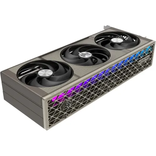 The Sapphire NITRO+ AMD Radeon RX 9070 16GB Gaming OC GDDR6 Graphics Card is your dream rig upgrade. Built on the advanced AMD RDNA 4 architecture, it features 56 Compute Units, 3584 Stream Processors, 56 Ray Accelerators, and 112 AI Accelerators, delivering next-gen performance for 4K gaming, content creation, and AI-enhanced workflows. With a Boost Clock of up to 2700 MHz and a Game Clock of up to 2210 MHz, this Sapphire NITRO+ AMD Radeon RX 9070 Graphics Card handles bursty workloads and sustained gameplay with ease. It packs 16GB of GDDR6 memory on a 256-bit bus, running at a blazing 20 Gbps effective memory clock, supported by 64MB Infinity Cache for ultra-fast data access. Display support includes 2x HDMI and 2x DisplayPort 2.1a, each capable of 7680×4320 resolution, with up to 4 simultaneous displays. The Sapphire RX 9070 GPU connects via PCIe 5.0 x16, ensuring future-proof bandwidth and lightning-fast responsiveness. Sapphire’s premium features include Tri-X Cooling, AeroCurve Fan Blades, Free Flow design, Cold Rolled Steel Frame, ARGB Light Bar, Fan Quick Connect, and Honeywell PTM7950 Thermal Interface Material, all working together to keep thermals low and aesthetics high. Intelligent fan control, TriXX Boost, Glow!, and external RGB LED MB sync offer customization and performance tuning on the fly. Bundled accessories like the L-shape support bracket, 3-pin 5V ARGB cable, and 12V-2x6(H++) to 3x8-pin adapter make installation seamless. On the software side, it supports AMD HYPR-RX with AFMF 2, FidelityFX Super Resolution 4, Anti-Lag 2, Radiance Display Engine, AV1 encode/decode, and DirectX 12 Ultimate, all managed through the Adrenalin Edition app. With a typical board power of 245W, it requires a minimum 650W PSU, 12V-2x6(H++) connector, and at least 8GB of system memory (16GB recommended). Compatible with Windows 10/11 and Linux (64-bit), this 3.2-slot ATX form factor GPU (330.8×128.5×65.68mm) is engineered for elite gamers, creators, and tech enthusiasts who demand nothing less than excellence.