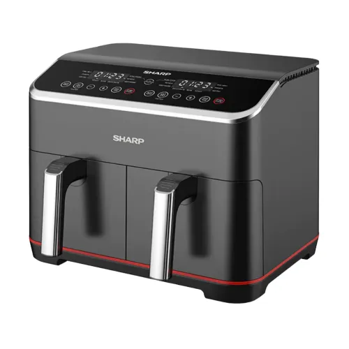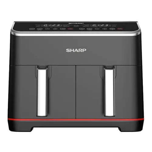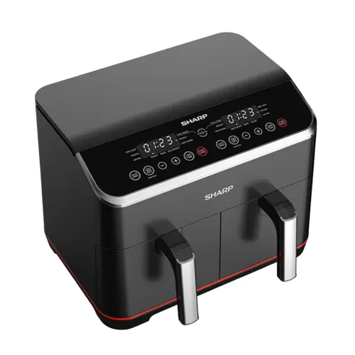 The Sharp KF-DF80RT-K3 Double Basket 8 Liter Air Fryer is a high-performance kitchen appliance designed to revolutionize home cooking with speed, versatility, and convenience. With a generous 8-liter capacity split into two independent 4-liter baskets, this dual-drawer air fryer empowers users to prepare multiple dishes simultaneously—ideal for families, entertaining guests, or meal prepping with ease. Each drawer is powered by a robust 1800W heating system, delivering consistent and rapid heat distribution for perfectly cooked meals every time. The adjustable temperature range of 80°C to 200°C and timer settings up to 60 minutes offer precise control over a wide variety of recipes, from crispy fries and golden chicken wings to tender vegetables and baked treats. Featuring 8 pre-set programs and 12 auto-menus, the Sharp KF-DF80RT-K3 fryer simplifies cooking with one-touch functionality tailored to popular dishes. Its advanced Rapid Air Technology ensures faster cooking with minimal oil, producing healthier meals with a satisfyingly crunchy texture. The sleek LED display and touch-sensitive control panel provide a modern, intuitive user experience, while the dishwasher-safe frying pots and baskets make cleanup effortless. Built with non-stick coated trays and baskets, the Sharp KF-DF80RT-K3 8L Air Fryer combines durability with easy maintenance, preventing food residue and enhancing cooking efficiency. Whether you're upgrading your kitchen or seeking a smarter way to cook, this Sharp Double Basket Air Fryer delivers powerful performance, stylish design, and user-friendly features that cater to both novice cooks and culinary enthusiasts.