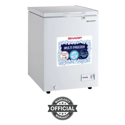 closeThe Sharp SJC-118-WH 110 Liter Deep Freezer is a versatile and effective option for homes and companies that require dependable cold storage. This SJC-118-WH deep freezer was designed with both functionality and energy economy in mind. The Sharp SJC-118-WH employs an energy-saving refrigerant that offers excellent freezing performance while also helping to minimize power expenses. With a roomy 110-liter capacity, it can store a wide range of frozen goods, from bulk purchases to perishable items, making it suitable for both home and business usage. One of the SJC-118-WH's standout features is its detachable basket storage, which provides for simple organizing and quick access to regularly used things. This SJC-118-WH freezer can be taken out, making it easy to sift and collect goods without having to rummage through the entire freezer. The SJC-118-WH freezer also has a built-in safety lock with a grip handle and key, which provides piece of mind by guaranteeing that the contents stay secure, particularly in places where safety and security are critical. The LED illumination within the freezer improves visibility, making it easier to find objects in low-light conditions or at night. For extra convenience, the SJC-118-WH has a sturdy aluminum inner liner that is not only resistant to wear and tear but also easy to clean, ensuring that your freezer remains in top shape over time. The built-in condenser of SJC-118-WH maximizes cooling efficiency by maintaining constant temperatures throughout the freezer, ensuring that your food is maintained at the optimal level. One of the most notable features of this deep freezer is the fast-freezing button, which allows you to quickly freeze fresh foods. This function is especially important for preserving the nutrition and freshness of newly stored items, allowing them to remain in top condition for longer. With its mix of energy economy, safe storage, and user-friendly features, the Sharp SJC-118-WH 110 Liters Deep Freezer is a solid and practical solution for anybody in need of dependable cold storage. Whether you're stocking up on groceries, preserving seasonal vegetables, or keeping business materials, this deep freezer provides reliable performance in a small, space-saving design.