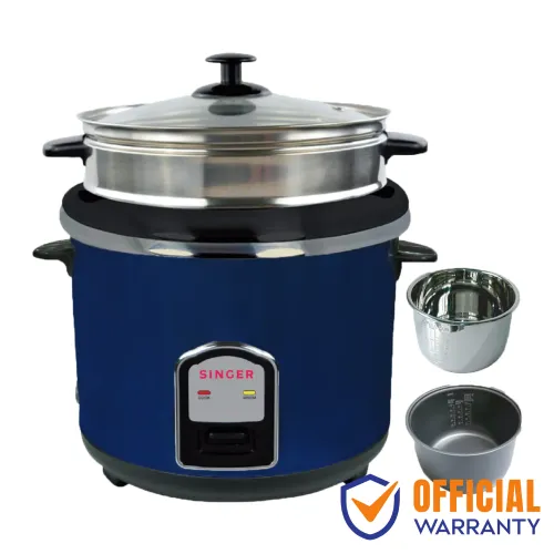 The Singer B9918PRIME 1.8 L Rice Cooker Navy Blue is a compact, efficient, and stylish kitchen appliance designed for everyday cooking in small families or individual households. This practical Singer Rice Cooker features a 1.8-liter capacity, making it ideal for cooking rice, grains, and simple steamed dishes with ease. Built for consistent performance, the Singer 1.8L Rice Cooker delivers even heat distribution for perfectly cooked rice, while the automatic cook and keep-warm function ensures your food stays warm and ready to serve without burning. Finished in an attractive navy blue color, the Singer B9918PRIME Rice Cooker adds a modern touch to any kitchen, while its non-stick inner pot allows easy cleaning and hassle-free maintenance. With trusted Singer build quality and user-friendly operation, this Singer Rice Cooker is a smart choice for those looking for reliability, efficiency, and everyday convenience.