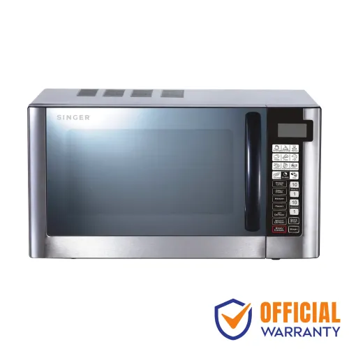 The Singer SMWG30G6LP 30L Grill Microwave Oven is a multifunctional powerhouse designed to meet the demands of modern kitchens with style, safety, and smart cooking technology. Its generous 30-liter capacity makes it ideal for families or frequent entertainers, while the combination of 1400W microwave power and 1050W grill power ensures fast, even cooking with beautifully crisped textures. Whether you're reheating leftovers, grilling kebabs, or defrosting frozen ingredients, this Singer SMWG30G6LP 30L Microwave Oven delivers consistent results thanks to its 11 auto cooking menus, which take the guesswork out of everyday meals. The pull door design offers ergonomic convenience, and the digital control panel with intuitive settings makes operation effortless. Built-in features like time and weight defrosting, a kitchen timer, and a cooking end signal enhance usability, while the child safety lock provides peace of mind for households with young children. Its sleek silver finish and compact footprint add a touch of elegance to any countertop. Rated at 230V~50Hz, this Singer SMWG30G6LP grill microwave is not just an oven it’s a reliable partner for fast-paced lifestyles.