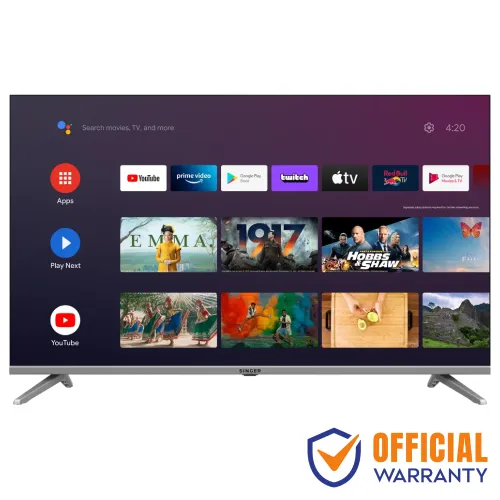 The SINGER S32 SLE32E3AGOTV is a cutting-edge 32-inch HD Android TV with a sleek and modern frameless design of about 81cm. It comes with the latest official Android 11 operating system which provides access to a vast range of apps and services from the Google Play Store, including streaming platforms like Netflix, YouTube, and Amazon Prime Video. The television is also equipped with Google Assistant which allows you to easily search for content, control smart home devices, and perform various other tasks with voice commands. The built-in Chrome cast feature makes it easy to cast your favorite content from your mobile devices onto the TV screen. The SINGER S32 SLE32E3AGOTV comes with dual-band Wi-Fi, providing fast connectivity for streaming and browsing. Dolby audio sound system delivers a high-quality audio experience, making movies and TV shows more immersive and engaging. The TV is equipped with humidity protection, thunder protection, dust prevention, and high voltage protection, ensuring it is safe and protected from the elements and power surges, making it a reliable and durable option for your entertainment needs.
