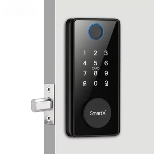 The SmartX SX-DBL05 Smart Door Lock fits existing standard deadbolt or ball lock cutouts without complex tools or permanent modifications. You can easily reinstall your old lock when moving, making SmartX SX-DBL05 Door Lock ideal for rental apartments and shared homes. SmartX Door Lock works perfectly as a secondary lock, preventing daily inconveniences when leaving or returning home. This practical design eliminates waiting for someone inside to lock up, especially during harsh weather or illness. SmartX SX-DBL05 Smart Deadbolt Door Lock features five secure unlocking methods for flexible everyday access. Choose fingerprint, password keypad, IC card, Tuya Bluetooth app unlock, or mechanical key backup for complete peace of mind. SmartX SX-DBL05 Smart Door Lock connects via Bluetooth BLE and supports Tuya Smart or Smart Life app management. Through the app, users can manage up to 200 passwords or users, monitor access logs, and generate temporary credentials. SmartX SX-DBL05 Door Lock uses a high security Grade C lock cylinder for enhanced protection at an affordable price. The durable aluminum alloy housing ensures long lasting strength across wooden, steel, aluminum, or brass doors. SmartX Door Lock supports door thickness from 35mm to 55mm, covering most residential and office installations. Powered by four AA batteries, the SmartX Door Lock delivers approximately six months of usage. A Type C emergency power interface provides backup access if batteries deplete unexpectedly. SmartX SX-DBL05 Smart Door Lock operates reliably between minus 20 and 60 degrees Celsius with 20 to 90 percent humidity.
