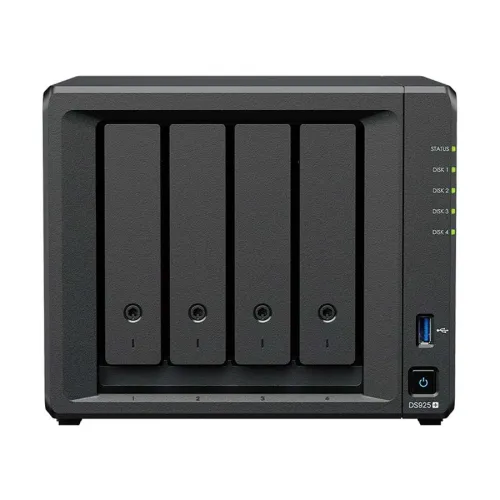 The Synology DiskStation DS925+ is a premium 4-bay NAS storage solution designed to meet the demands of both small businesses and advanced home users. As a robust Synology DiskStation DS925+ 4 Bays NAS Storage, it is powered by an AMD Ryzen V1500B Quad-Core 2.2GHz processor and comes with 4GB DDR4 ECC SODIMM memory, expandable up to 32GB across two slots, ensuring exceptional multitasking and data processing performance. This NAS features four SATA3 drive bays compatible with both 2.5" and 3.5" HDDs or SSDs, along with two M.2 2280 NVMe SSD slots for caching, enabling ultra-fast read/write speeds and enhanced storage efficiency. Supporting multiple RAID configurations—RAID 0, 1, 5, 6, and 10—the Synology DiskStation DS925+ offers flexible and secure data protection. For connectivity, it provides 2 Gigabit LAN ports and 2 USB 3.2 Gen 1 ports, allowing seamless file sharing, remote access, and backup operations. Its dual 92mm cooling fans operate in Full-Speed, Cool, and Quiet modes, maintaining a low 20.5 dB(A) noise level while keeping drives safe. Compact at 166 x 199 x 223 mm and weighing just 2.26 kg, the Synology DiskStation DS925 Plus delivers energy-efficient performance, consuming only 37.91 watts during access and 12.33 watts in HDD hibernation. With an operating temperature range of 0°C–40°C and humidity tolerance of 8–80%, this NAS ensures reliability in diverse environments, making the Synology DiskStation DS925+ a perfect choice for high-capacity, high-speed, and secure network-attached storage.