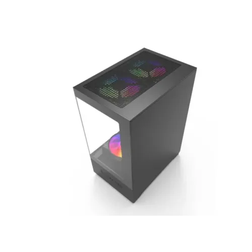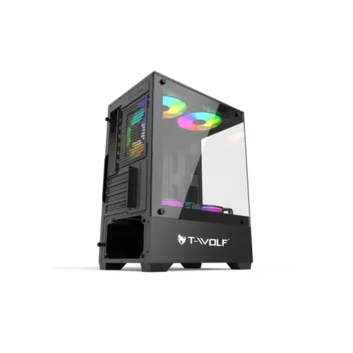 The T-wolf Ice Cooler X5 ARGB is a stylish and compact mid tower desktop gaming case designed for gamers who want great cooling and a clean look. It comes in a sleek design and features tempered glass panels on the front and left side, allowing users to show off their build and lighting setup. This T-Wolf Ice Cooler X5 ARGB Gaming Casing supports ITX and M-ATX motherboards, making it perfect for small to medium-sized gaming rigs. With a lightweight design of just 2.25kg and dimensions of 280mm in length, 190mm in width, and 375mm in height, it’s easy to move and fits well on most desks. The cooling system includes an Ice Cooler and five built-in ARGB fans that help keep the system cool during long gaming sessions. It supports two 120mm fans on the top, two 120mm fans at the bottom, and one 120mm fan at the rear for strong airflow. For storage, it offers one HDD bay and one SSD bay, giving users enough space for essential drives. The front I/O panel includes one USB 3.0 port and two USB 2.0 ports for easy access to devices. Overall, the T-wolf Ice Cooler X5 ARGB casing combines good looks, strong cooling, and practical features to help gamers build a powerful and attractive desktop setup.