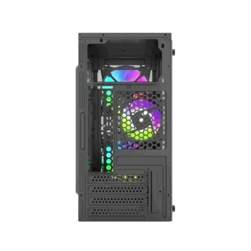 The T-Wolf NEOPULSE X3 RGB Mid Tower mATX Gaming Casing combines performance, durability, and eye-catching design for modern gamers and PC enthusiasts. The T-Wolf NEOPULSE X3 RGB Mid Tower mATX Gaming Casing is made of high-quality 0.4mm SPCC steel, ensuring long-term dependability while remaining lightweight enough for small configurations. Its mesh front panel design allows for better airflow, keeping your components cool even during extended gaming sessions. This T-Wolf Gaming Casing, designed to support Micro-ATX motherboards, has a well-balanced structure that is both functional and visually appealing. Inside, the T-Wolf NEOPULSE X3 RGB mATX Gaming Casing supports VGA cards up to 270mm in length and CPU coolers up to 150mm in height, providing versatile hardware compatibility. It also has separate drive bays for one HDD and one SSD, providing ample storage space for games, media, and data. The T-Wolf case features four PCI slots for easy expansion and upgrades, allowing gamers to easily customize their configurations. The well-designed cooling system offers various fan configurations. Two 120mm fans in the front, one 120mm on the side, and one 80mm or 90mm fan in the back provide excellent airflow throughout the chassis for steady thermal performance. The T-Wolf NEOPULSE X3 RGB Casing provides practical and convenient connectivity, including dual USB 1.0 ports, an audio port, and a microphone port for seamless device integration. The RGB lighting accents on the front add to its modern style, giving an engaging visual experience for gaming setups.