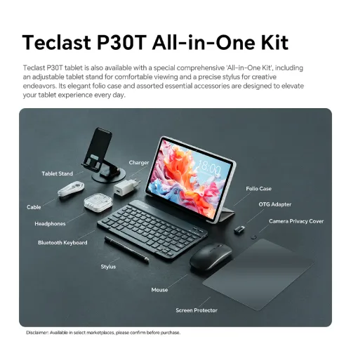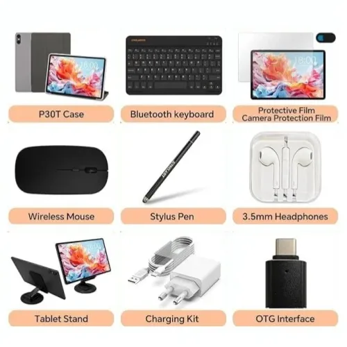 The Teclast P30T 10.1 Inch Tablet is a beautiful and powerful device designed to meet your everyday digital needs. Powered by the Unisoc T606 Octa-core processor and Arm G57 MC01 GPU, the Teclast P30T Tablet ensures smooth multitasking and reliable performance for gaming, streaming, and productivity. It comes with 4GB of RAM, expandable up to 12GB, and offers 128GB of internal storage, which can be increased up to 1TB via a microSD slot, giving you ample space for apps, media, and more. The Teclast P30T 10.1" Tablet features a stunning 10.1-inch IPS display with a resolution of 1280×800, delivering vibrant colors and sharp visuals, enhanced by TDDI Fully Laminated technology for a more immersive viewing experience. Running on the latest Android 14 OS with Google Widevine DRM L1 support, this tablet ensures secure, high-definition streaming across your favorite platforms. Capture every moment with the 2MP front camera for video calls and a 5MP + 0.3MP dual rear camera setup with flash for clearer photos and videos. The 6000mAh lithium battery offers long-lasting power, and with Type-C charging, recharging is fast and convenient. The Teclast P30T Tablet also delivers rich audio through its built-in dual-channel speakers and supports private listening via the 3.5mm headphone jack. Stay connected with dual-band Wi-Fi (2.4G + 5G, 802.11 a/b/g/n/ac/ax) and Bluetooth 5.0 for seamless pairing with wireless devices. Additional features like the Gravity sensor and Hall sensor enhance usability, making the Teclast P30T 10.1 Inch perfect for a range of activities. Encased in a stylish Space Grey metal body, it measures 242.4mm × 161.3mm × 8.1mm and weighs just 440g, balancing portability with durability. Whether you’re working, studying, or relaxing, the Teclast P30T 10.1 Inch Tablet delivers exceptional performance at a remarkable value.