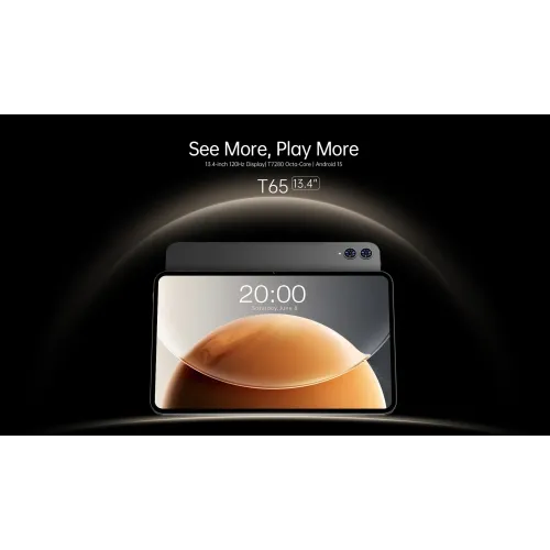 The Teclast T65 13.4-inch Tablet is bundled with a sleek back cover and detachable keyboard for versatile use. Powered by the high-performance Unisoc T7280 octa-core processor, this tab delivers smooth multitasking and responsive graphics. With up to 12GB RAM and 128GB UFS internal storage expandable via MicroSD, you’ll enjoy ample space and speed for apps, media, and files. The vibrant 13.4-inch IPS display boasts a 1920×1200 resolution, 120Hz refresh rate, and 16:10 aspect ratio, ideal for streaming, browsing, and creative work. Running on Android 15 with Google Widevine L1 certification, it ensures secure HD content playback. Capture moments with a 13MP rear camera featuring an auxiliary lens and LED flash, and stay connected via dual-band Wi-Fi, Bluetooth 5.0, and Full Netcom 4G support with dual Nano SIM slots. The 8000mAh battery with USB-C charging keeps you powered throughout the day, while dual stereo speakers and a 3.5mm headphone jack enhance your audio experience. Advanced sensors, including GPS, GLONASS, Galileo, gyroscope, and compass, make the T65 is a smart companion for work, travel, and play.