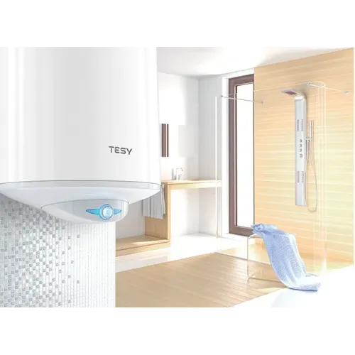 The TESY Anticalc 50-Liter Geyser is a high-performance electric water heater designed for energy-efficient and reliable hot water supply in residential settings. With a compact height of 0.412 meters, it fits seamlessly into modern bathrooms and utility spaces. Powered by a dual-rated system of 1600W and 800W, this geyser offers flexible heating options to suit varying usage needs. Its advanced heating mechanism achieves a temperature rise of 45K (from 15°C to 60°C) in just 1 hour and 37 minutes at full power, or 3 hours and 15 minutes at reduced power, ensuring quick access to hot water. The TESY Anticalc technology minimizes limescale buildup, extending the appliance’s lifespan and maintaining optimal efficiency. With an annual electricity consumption of 1388 kWh, it balances performance with energy savings, making it an ideal choice for eco-conscious households. Whether for daily showers or kitchen use, the TESY Anticalc 50L water heater delivers consistent warmth, durability, and smart energy management.