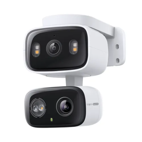The TP-Link Tapo C246D 3MP Dual Lens WiFi Camera features a 2.8mm wide lens and 6mm telephoto lens for flexible viewing angles. TP-Link 3MP WiFi Camera captures detailed 2304×1296 resolution video with 15fps and supports 10.8x digital zoom for closer inspection. TP-Link Dual Lens WiFi Camera provides 125.5° wide-angle and 67.1° telephoto field of view for complete coverage with reduced blind spots. TP-Link WiFi Camera supports synchronized smart tracking, where the pan tilt lens follows motion detected by the fixed lens automatically. TP-Link Tapo C246D 3MP Dual Lens Pan/Tilt WiFi Camera offers smart night vision with IR LEDs up to 40 feet and full color mode. TP-Link Dual Lens Camera includes IR-cut filter auto switching for reliable day and night performance. TP-Link Tapo C246D 3MP WiFi Camera features built-in microphone and speaker with two-way audio and noise cancellation for clear communication. TP-Link Dual Lens WiFi Camera includes a 99dB siren to deter unwanted visitors and enhance security. TP-Link WiFi Camera supports AI detection including motion, person, pet, vehicle, line-crossing, baby cry, glass break, bark, and meow detection. TP-Link Tapo C246D 3MP Dual Lens Pan/Tilt WiFi Camera allows customizable activity zones and instant notifications for better monitoring control. TP-Link WiFi Camera supports microSD storage up to 512GB and optional Tapo Care cloud services. TP-Link Tapo C246D 3MP WiFi Camera connects via 2.4GHz Wi-Fi and supports RTSP, ONVIF, and multiple network protocols. TP-Link Dual Lens WiFi Camera ensures security with 128-bit AES encryption, SSL TLS, and on-device machine learning protection. TP-Link WiFi Camera supports Google Assistant, Amazon Alexa, Samsung SmartThings, and offers IP65 weather resistance with multiple mounting options.