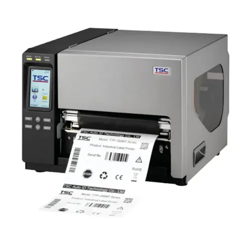 The TSC TTP-384MT Barcode Label Printer is a powerful industrial-grade TSC Barcode Printer engineered for high-volume, wide-format label printing across applications like compliance labeling, inventory control, signage, and brand marketing. Supporting both thermal transfer and direct thermal printing, this TSC Label Printer delivers sharp, high-resolution output at 300 dpi, with a maximum print width of 8.64 inches (219.5 mm) and speeds up to 102 mm/sec (4 inches per second). It accommodates a wide range of media types including continuous, die-cut, fan-fold, tag, notched, black mark, and perforated labels, with a maximum label width of 241.3 mm (9.5 inches). The printer features a user-friendly 4.3-inch color touch LCD display with 6-button navigation, making operation intuitive even in demanding environments. Internally, it’s equipped with 256MB SDRAM and 512MB Flash memory, expandable via SD Flash up to 32GB, ensuring smooth performance for complex label formats. With versatile connectivity options including USB 2.0, LAN, Serial, Parallel, and USB Host, the TSC TTP-384MT Barcode Label Printer integrates seamlessly into diverse workflows. Its rugged die-cast chassis and sheet metal structure with a clear media view window enhances durability in industrial settings. Supporting a wide range of 1D and 2D barcode formats such as QR, DataMatrix, and PDF-417, and compatible with 600-meter ribbon rolls, this TSC Label Printer is built for efficiency, precision, and long-term reliability in professional labeling environments.