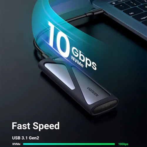 The UGREEN CM400 M.2 NVMe SSD Enclosure (#10902) is a premium storage solution built for users who need both speed and reliability. Equipped with a USB 3.1 Gen 2 interface, this enclosure delivers lightning-fast transfer rates of up to 10Gbps, perfect for transferring large files, 4K videos, and high-performance workloads. Supporting storage capacities of up to 2TB, the UGREEN CM400 SSD Enclosure is compatible with multiple SSD sizes, including 2230/2242/2260/2280, and works seamlessly with both M-Key and M+B Key connectors under the NVMe 1.3 protocol. Designed with a durable aluminum alloy casing and built-in heat dissipation, it ensures stable performance even during intensive use. Its tool-free installation makes setup quick and hassle-free, while the included USB Type-C cable ensures versatile connectivity, making it a reliable UGREEN CM400 Type-C SSD Enclosure for modern devices. With added features like the SMART function, SSD status monitoring, and advanced data protection, this enclosure combines cutting-edge performance with dependable security in one compact design.