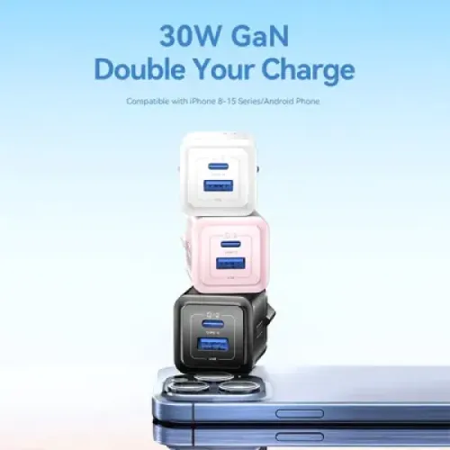 The Vention FEQW0-EU 30W 2-Port USB GaN Charger is a compact and high-performance charging device built for efficiency, safety, and universal compatibility. Equipped with advanced GaN (Gallium Nitride) technology, this charger offers significantly faster charging with less heat generation, higher power density, and improved energy efficiency compared to traditional chargers. It features dual output interfaces – USB-C and USB-A – allowing users to charge two devices simultaneously. The USB-C port supports a wide voltage range with multiple fast charging outputs, including 5V/3A (15W), 9V/3A (27W), 12V/2.5A (30W), 15V/2A (30W), and 20V/1.5A (30W), with PPS (Programmable Power Supply) support delivering up to 30W max. The USB-A port is equally powerful, offering output profiles such as 5V/3A (15W), 9V/3A (27W), 12V/2.5A (30W), and 20V/1.5A (30W max). When using both ports simultaneously, the charger intelligently regulates the total output to 5V/3A (15W) for stable dual-device charging. The Vention FEQW0-EU charger supports multiple fast charging protocols such as PD 3.0, PPS, QC 3.0, FCP, SCP, AFC, and Apple 2.4A, making it widely compatible with iPhone, Samsung, Huawei, Xiaomi, iPad, tablets, and even lightweight laptops. It operates within a global input voltage range of 100–240V~50/60Hz, making it travel-ready for international use. Constructed from high-grade PC material with a UL94-V0 fireproof rating, the Vention FEQW0-EU charger is engineered for safety with built-in protections against overvoltage, overcurrent, overheating, and short circuits. The sleek white shell, compact EU plug design, and premium internals make the Vention FEQW0-EU 30W GaN Charger the ideal fast-charging companion for daily life or travel.