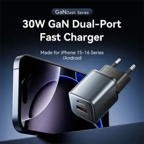 The Vention FEWH0-EU 30W 2-Port GaN Charger is a powerful and compact charging solution designed for users who value speed, safety, and versatility. This Vention FEWH0-EU PD Fast Charger features a sleek finish, combining modern aesthetics with premium functionality. Engineered with advanced GaN (Gallium Nitride) technology, this 30W charger delivers high-efficiency power output in a compact, travel-friendly form factor. The dual-port design includes both USB-C and USB-A interfaces, allowing simultaneous charging of two devices—perfect for smartphones, tablets, wearables, and more.The USB-C port supports multiple voltage levels—5V/3A, 9V/3A, 12V/2.5A, 15V/2A, and 20V/1.5A—maxing out at 30W, ideal for fast charging PD-enabled devices. The USB-A port provides 5V/3A, 9V/2A, and 12V/1.5A, delivering up to 18W, compatible with legacy devices and Quick Charge-supported gadgets. When both ports are used simultaneously, the total output is optimized to 5V/3A (15W). Built with durable PC flame-retardant material, this Vention FEWH0-EU charger is designed for safety and long-lasting use. It comes with robust protection mechanisms, including temperature control, over-voltage protection, short circuit defense, lightning resistance, anti-interference shielding, and flame-retardant protection. These advanced safety features ensure worry-free daily charging. The Vention FEWH0-EU Adapter supports a wide range of charging protocols, such as PD 3.0, PPS, QC 3.0, FCP, SCP, AFC, DCP, and Apple 2.4A, making it highly versatile and compatible across Android, iOS, and other USB-powered devices. Whether you're at home, in the office, or on the go, the Vention FEWH0-EU Type C Charger delivers fast, safe, and efficient power in a compact EU-plug design, making it a smart charging companion for modern tech lifestyles.