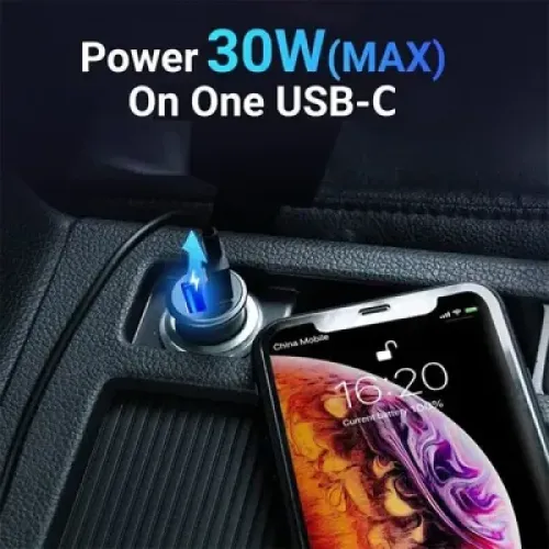 The Vention K11B0 30W 2-Port Car Charger is a high-performance, compact power solution designed for modern mobile lifestyles. This intelligent car charger supports dual-port output, allowing you to charge two devices simultaneously with a powerful 30W total output. Equipped with both USB-A and USB-C ports, it caters to a wide range of devices—from iPhones and Android phones to tablets, GPS units, and more—ensuring universal compatibility and convenience. With USB-C Power Delivery (PD) and Quick Charge (QC) support, the Vention K11B0 delivers ultra-fast, stable charging that can boost your smartphone battery up to 50% in just 30 minutes. Whether you’re heading to a meeting, running errands, or on a road trip, this charger keeps your devices powered with reliable speed and safety. The 30W car charger also features smart IC technology to prevent over-voltage, over-current, overheating, and short-circuit issues, ensuring your devices remain protected while charging. Crafted with a sleek, durable zinc alloy body, the Vention K11B0 offers a premium finish that blends seamlessly with any vehicle interior. Its compact design fits snugly into most cigarette lighter sockets, and the LED indicator light ensures visibility in the dark, adding to the user-friendly experience . If you’re looking for a fast car charger with dual ports, the Vention K11B0 USB-A + USB-C car charger is your go-to choice. Perfect for tech-savvy drivers and frequent travelers, this 30W fast car charger is built to deliver speed, safety, and style—all in one package.
