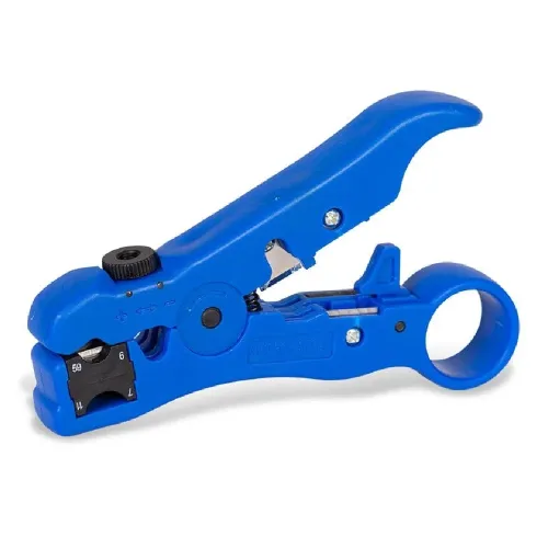 The Vention KEBL0 Blue Coaxial Cable Stripper is a multifunctional tool designed for accurate cable cutting, shearing, and stripping in professional and home setups. It supports cable diameters from 3.2mm to 9.0mm, making it suitable for various coaxial and network cables. The tool includes a sharp blade and an adjustable screw position that helps control stripping depth with precision. Its double spring design ensures smooth operation and reduces hand fatigue during long tasks. The Vention KEBL0 Blue Coaxial Cable Stripper offers dedicated ports for twisted pair cables, flat network cables, and coaxial round cables. Users can place the cable in the correct port based on its outer diameter for clean and quick stripping. The stripping rotary buckle improves accuracy and helps maintain consistent results. The Vention KEBL0 Blue Coaxial Cable Stripper has a convertible knife set adds flexibility for different cable types and working situations. The non-slip handle features smooth ergonomic lines that provide a firm and comfortable grip during use. A labor-saving spring mechanism helps increase efficiency and reduces strain while performing repetitive tasks. The tool also includes a reliable cutting port that delivers clean edges without damaging the inner structure. Its compact and lightweight design makes it easy to store in toolboxes or carry on job sites. With durable construction and precise performance, the Vention KEBL0 Blue Coaxial Cable Stripper is an excellent choice for technicians, installers, and DIY users who need dependable cable preparation for networking and coaxial projects.