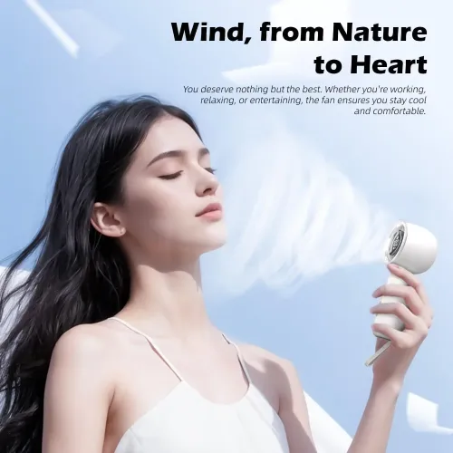 | Others | Motor: Ultra-high speed for strong airflow Battery Capacity: 1200mAh Battery Life: Up to 5 hours Charging Time: 3.5 H Charging Method: USB Type C Power: 3W Max Speed Levels: 3 adjustable speeds Portability: Detachable lanyard |