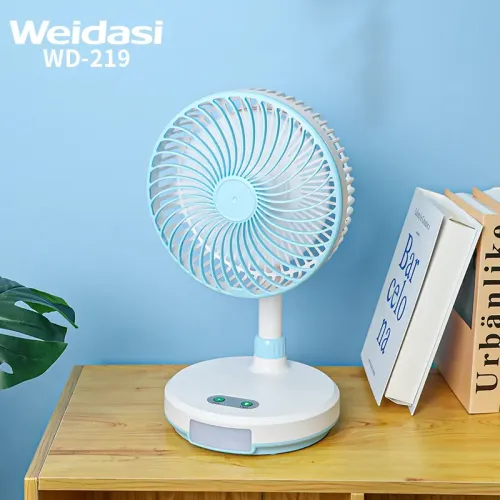 The WEIDASI WD-219 Rechargeable Desktop Fan is a dynamic and highly functional portable desk fan suitable for both personal and commercial applications. The WEIDASI WD-219 Desktop Fan has a 7.5-inch fan blade and provides powerful and customizable airflow, making it ideal for cooling compact spaces such as workstations, tables, and bedroom settings. With a 3600 mAh rechargeable battery, this fan has a battery life of 3 to 5 hours, depending on the speed level. The fan has three adjustable speed levels, so customers can choose between low, medium, and high airflow to suit their needs. In addition to cooling, the WEIDASI WD-219 Fan includes an integrated LED light, making it suitable for use during power outages, camping, or evening activities. The WEIDASI WD-219 Charger Fan enables optimum portability and freedom by using a rechargeable battery rather than a constant power supply. The WEIDASI WD-219 Rechargeable Desktop Fan's compact design (35.6 x 21 x 18.5 cm) allows it to fit effortlessly on any desk or tabletop. Whether you are working, relaxing, or traveling, the WEIDASI WD-219 Fan provides a dependable and efficient cooling solution.