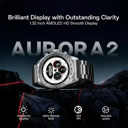 The Weofly Aurora 2 Smart Watch comes with a 1.32-inch AMOLED Always-On Display that ensures crisp visuals and smooth performance. Its 466x466 pixel resolution makes notifications and apps clear and easy to read. The watch is built with a full-metal unibody and stainless steel strap, combining strength with sophistication. A 22mm strap width adds stability and comfort, making the Weofly Aurora 2 suitable for daily wear.