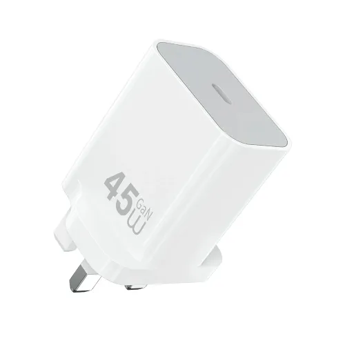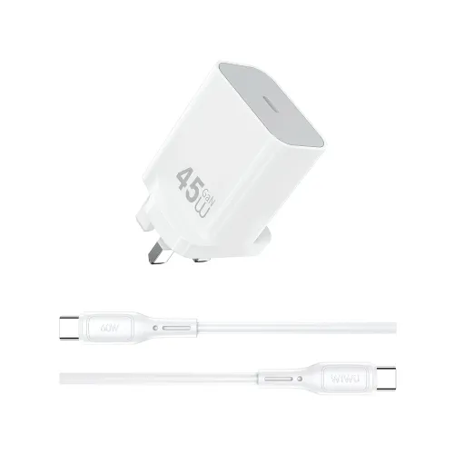 The WiWU Essen Wi‑G024 45W GaN Charger with Type‑C to C Cable is a compact and efficient charging solution designed for modern devices, combining advanced GaN technology with portability and safety. Built from durable retardant PC (V‑0) material with a sleek finish, this WiWU 45W GaN Charger delivers powerful PD charging up to 45W, making it ideal for smartphones, tablets, and laptops. Featuring a Type‑C interface, it supports multiple fast‑charging protocols with stable output across 5V, 9V, 12V, 15V, and 20V, ensuring universal compatibility. The included 1m Type‑C to C cable with 60W capacity adds convenience for everyday use, while 12‑layer safety protection safeguards against overheating, over‑voltage, and short circuits. Lightweight at just 50g and available in UK plug version, this WiWU GaN Charger is travel‑ready and reliable, offering a perfect balance of performance, safety, and portability for users seeking a dependable WiWU adapter with Type‑C Cable.