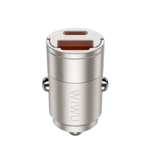 The WiWU Wi‑QC028 30W Dual Port Car Charger is a compact and lightweight fast‑charging solution designed for modern drivers who need reliable power on the go. With a wide input range of 12–24V, it delivers stable performance across different vehicles, while its dual output ports provide versatile charging options. The USB‑A port supports multiple protocols including QC3.0, QC2.0, AFC, FCP, Apple, Samsung, and BC1.2 with up to 18W output, ensuring compatibility with a wide range of smartphones and devices. The Type‑C port offers powerful 36W output with PPS, PD3.0, PD2.0, QC4+, QC3.0, and SCP support, making it ideal for fast charging newer devices. Compact in size at just 41×24mm and weighing only 17.5g, this WiWU car charger is easy to carry and install, while CE, FCC, and UKCA certifications guarantee safety and reliability. Combining efficiency, portability, and universal compatibility, the WiWU Wi‑QC028 Dual Port Car Charger is the perfect accessory for keeping your devices powered during every journey.