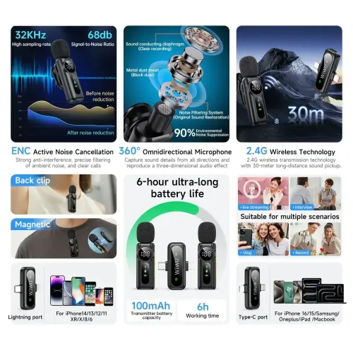 With only 22ms transmission delay, the WiWU Wi-WM007 provides smooth audio synchronization. This low latency ensures that sound remains aligned with video, which is essential for live streaming and video production. The microphone also maintains consistent clarity, reducing disruptions during recording.