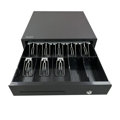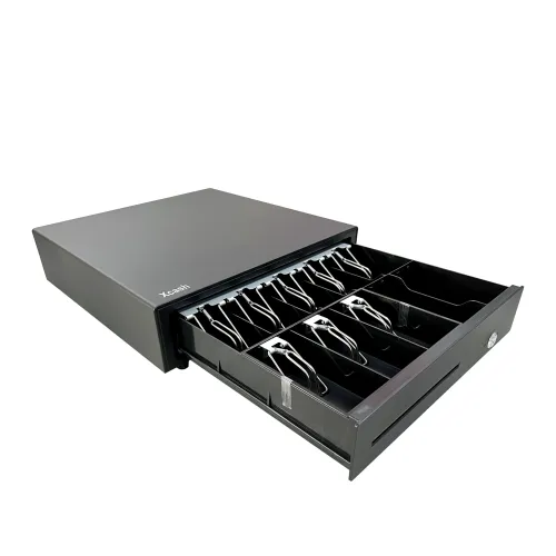 The Xcash M405E Cash Drawer is a dependable and efficient cash management solution. Designed to increase efficiency in a variety of retail and hospitality sectors. The Xcash Cash Drawer, made of heavy-duty metal, offers long-lasting sturdiness and dependable security, making it an excellent choice for retail stores, supermarkets, restaurants, pharmacies, and POS counters. This Xcash Cash Drawer has a well-organized tray layout with eight bill slots and two coin compartments, allowing for quick and easy access to cash during hectic transactions. The Xcash M405E Cash Drawer has a three-position lock system (lock, manual, and auto) that offers adaptable security, keeps cash safe, and gives operators complete control over drawer access. The RJ12 interface ensures smooth interoperability with most POS printers and systems that enable cash drawer connections, making installation and integration a breeze. The Xcash M405E Cash Drawer's solid build and easy functioning make it not only secure but also useful for daily company operations. Businesses can use the Xcash Cash Drawer to speed transactions, eliminate handling errors, and increase overall cashier efficiency. The Xcash Cash Drawer's design stresses both security and functionality, making it ideal for frequent use while retaining consistent performance over time. Whether in retail, hotel, or pharmacy sectors, the Xcash M405E Cash Drawer easily satisfies the demands of today's corporate situations.