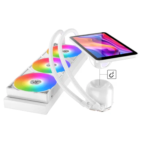 | Dimension | Radiator Dimensions: 394x120x27mm Tube Length:380mm White Sleeved Tube Pump Dimensions: 73x73x68 mm Fan Dimensions: 360x120x25mm Secondary Screen Dimensions: 174x110x63 mm |