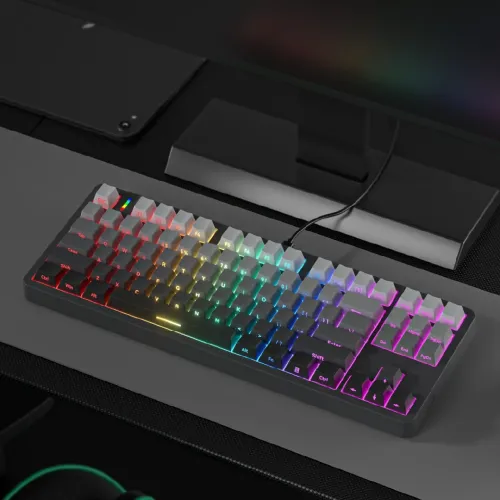 Zifriend G87 Pro RGB keyboard Built with a strong PC upper cover and stylish gradient grey finish, this mechanical keyboard offers both durability and modern aesthetics. The PBT side-printed keycaps resist wear and fading, ensuring long-lasting performance even with heavy daily use. Despite its solid construction, the Zifriend G87 Pro keyboard remains lightweight at just 0.3 kg.